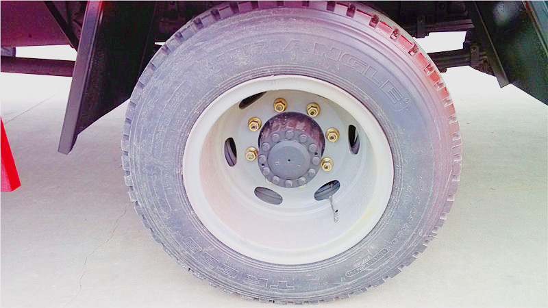 三角的8.25R20鋼絲胎,需要說明的是這是解放廠家隨機(jī)的,不是說每一臺(tái)都是三角的,有可能是其它品牌的