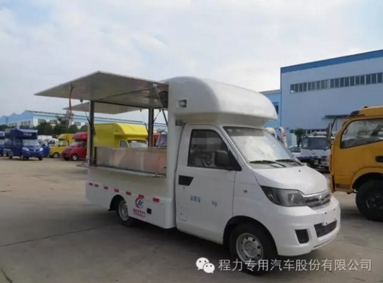 答案就是下圖這種目前很火的車——流動(dòng)售貨車、流動(dòng)餐飲車。