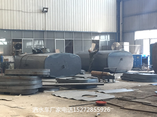 灑水車(chē)罐車(chē)內(nèi)部的波浪板制作需要用的機(jī)器不同一些,首先同樣是通過(guò)等離子切割機(jī)裁剪出弧形板塊,然后是通過(guò)折彎?rùn)C(jī)把弧形鋼板變成波浪的形狀。而波浪板中的人孔則是液壓機(jī)一次性沖壓成型的。至于波浪板、人孔的包邊和炮筒則需要用到剪板機(jī)。