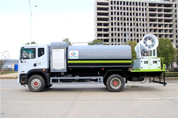 改裝配置:罐體用4MM碳鋼板制作,罐內(nèi)隔板具有防波作用,以減低灑水車行駛時(shí)罐體液體的沖擊。整車帶一個(gè)專用灑水泵(垂直最大吸程6米),灑水寬度14米,射程28米。多功能灑水車配備2個(gè)前沖(噴)(能將路面泥巴、塵土、垃圾沖干凈);2個(gè)后灑(能均勻地將水灑在路面,一次灑水寬度14米)、2個(gè)側(cè)噴(花灑)(能均勻地將路旁綠化帶澆灌)、帶1個(gè)后工作平臺(tái),平臺(tái)上安裝1個(gè)綠化灑水高炮(灑水炮可全方位旋轉(zhuǎn),可連續(xù)調(diào)成直沖狀、大雨、小雨、毛毛雨,霧狀可調(diào)節(jié)沖洗高大樹木),引水時(shí)間<5min,流量90m3/h。帶1個(gè)消防接頭,帶1個(gè)自流閥,1個(gè)過濾裝置、人性化爬梯及側(cè)防護(hù)欄,安裝灑水音樂喇叭。