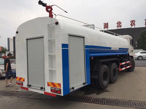 DLQ5254GQXLV5多功能灑水車,底盤型號(hào):EQ1250GLJ,新款御龍或T5駕駛室多功能灑水車、康機(jī)210馬力或玉柴240馬力發(fā)動(dòng)機(jī)、大八檔變速箱、280×80×(7+4)mm大梁、5噸前橋、10噸雙后橋、軸距4350+1300mm、輪胎11.00尼龍輪胎(或10.00鋼絲胎),配備30后置消防泵,24型消防炮,射程50-60米(后雙橋多功能灑水車(16-18噸)