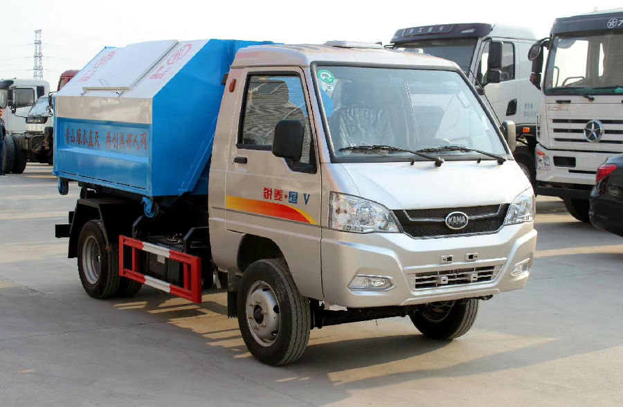 掛桶式垃圾車:垃圾斗固定在車身,可翻起自卸。在車廂一側(cè)有提升機,可將垃圾桶掛上自動倒入垃圾箱內(nèi)。垃圾桶放在路邊或小區(qū),隔一段距離放一個,可放240升350升的塑料桶。