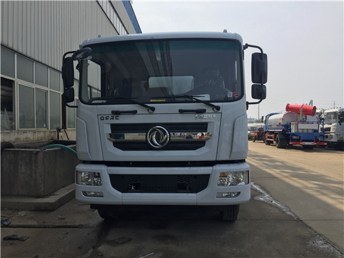 這臺東風D9灑水車采用的是康明斯180馬力六缸發(fā)動機。3.6噸前橋,9噸后橋,6檔變速箱,9.00鋼絲胎,軸距3950,帶原裝空調(diào)。嚴格按公告尺寸生產(chǎn)。前沖后灑,后工作平臺帶高炮,右位花灑,側(cè)噴,后工作平臺帶45米霧炮。(新法規(guī))
