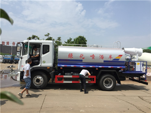 一臺(tái)“霧炮”灑水車可噴灑100多米?!办F炮”又叫環(huán)保除塵風(fēng)送式噴霧機(jī),安裝在車的后半部分。“霧炮”的原理是在液泵噴水后,利用風(fēng)機(jī)將水噴灑出去,能噴灑120米遠(yuǎn)、90米高。向天空噴灑水霧,達(dá)到抑制揚(yáng)塵、綠化除塵等效果。