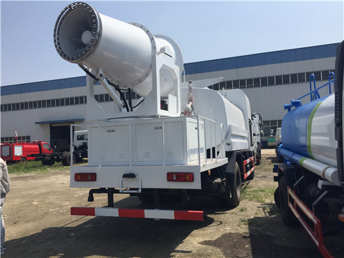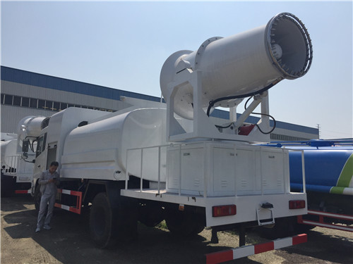 一臺(tái)“霧炮”灑水車可噴灑100多米?!办F炮”又叫環(huán)保除塵風(fēng)送式噴霧機(jī),安裝在車的后半部分?!办F炮”的原理是在液泵噴水后,利用風(fēng)機(jī)將水噴灑出去,能噴灑120米遠(yuǎn)、90米高。向天空噴灑水霧,達(dá)到抑制揚(yáng)塵、綠化除塵等效果。