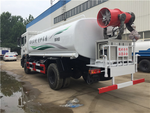 綠化灑水車具有前沖、后灑、側(cè)噴(更換噴頭后變?yōu)閭?cè)花灑)、后置式工作平臺(帶踏梯,四周有安全護(hù)欄)、平臺上設(shè)置有高壓水炮(可360°旋轉(zhuǎn),可調(diào)成柱狀最大射程28米,也可調(diào)成霧狀最大射程14米,可調(diào)成:直沖狀、大雨、中雨、小雨、毛毛雨),整車灑水寬度大于14米.配備優(yōu)質(zhì)大功率專用灑水泵,取力器,雜物過濾網(wǎng),國標(biāo)通用65型消防接口(可通過消防栓加水)、1套自流球閥系統(tǒng)(可自吸自排,最大吸程6米),2根引水鋼絲膠管(帶陰陽快速接頭),配鎖,水位計(jì),作業(yè)高音喇叭.兩側(cè)及后加強(qiáng)型保險(xiǎn)杠,防滑爬梯,膠管儲存筒。