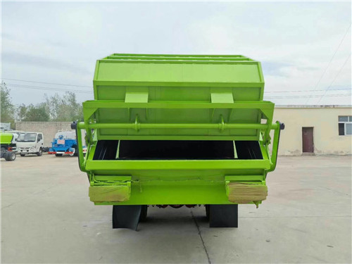 1,后帶掛桶翻轉(zhuǎn)架機(jī)構(gòu):這款垃圾車可以一次掛2個(gè)240升/桶的垃圾桶或1個(gè)480升/桶的垃圾桶,主要適用于街道、小區(qū)、學(xué)校有垃圾桶的地方,垃圾箱體由密封式垃圾廂、液壓系統(tǒng)、操作系統(tǒng)組成。整車為全密封型,自行壓縮、自行傾倒、壓縮過程中的污水全部進(jìn)入污水廂,較為徹底的解決了垃圾運(yùn)輸過程中的二次污染的問題,具有壓力大、密封性好、操作方便、安全等優(yōu)點(diǎn)。