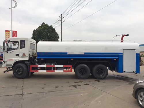保定用戶購(gòu)置15噸東風(fēng)T5保溫運(yùn)水車帶灑水車發(fā)車,該車夏季用戶綠化噴灑使用,而且駕駛室前置電動(dòng)灑水炮,冬季用來(lái)運(yùn)輸熱水,一車多功能。