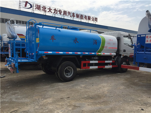 第八款不上牌9.5噸東風(fēng)灑水車底盤采用東風(fēng)大多利卡(十堰產(chǎn)),3800mm軸距,帶動(dòng)轉(zhuǎn),7.5尼龍?zhí)?,氣剎,電子熄火。前沖后灑,后工作平臺(tái)帶高炮,右位花灑,側(cè)噴。罐體9.2噸,金龍泵,前沖后灑,后工作平臺(tái)帶高炮,右位花灑,側(cè)噴。