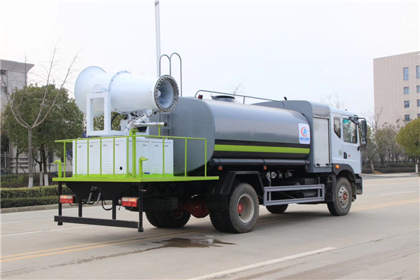 二種是工地使用的抑塵車,這種抑塵車就是灑水車加裝的霧炮,由于工地上的拆遷造成的灰塵是非常大的,要是用第一種抑塵車,會造成灰塵飛的到處都是,那是因為第一種抑塵車噴霧非常細,水量打不到工地拆遷的要求,而灑水車加裝的霧炮,水流量要別第一種大。為了減少拆遷工地揚塵污染降塵,各地政府大量購置抑塵車,也稱霧炮車,專門用于拆遷工地降塵控制,湖北程力專用汽車股份有限公司抑塵車噴霧距離為30到120余米,最大蓄水量近25噸,主要作用是噴霧抑塵,同時具備灑水車和道路沖洗車功能,可以有效抑制揚塵的產(chǎn)生。