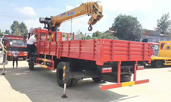 中置隨車(chē)吊的吊機(jī)位于駕駛室和貨箱之間。也有人以貨箱為參考,將中置隨車(chē)吊稱(chēng)為前置。因?yàn)檫@種布置方式允許貨物少量超長(zhǎng)等原因,在國(guó)內(nèi)這種布置方式的隨車(chē)吊比例更大一些。