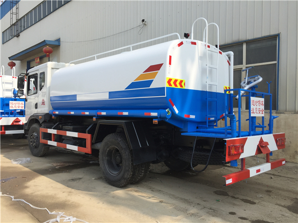 灑水車前裝有鴨形噴嘴或圓頭沖嘴,后面裝有圓柱開灑水噴嘴或蓮蓬頭噴嘴,后部有一工作平臺,裝配有水炮。后部還可裝8個噴嘴(選裝)噴水器一般用于沖洗街道,起除塵和降溫作用,其噴水器可以用調(diào)節(jié)噴嘴螺紋的方法改變噴水器的噴灑方向和角度,高射水炮可以用于城鄉(xiāng)園林綠化及應急消防。蓮蓬嘴可以澆落路中間噴水器沖起的灰塵,起到清潔空氣的作用。
