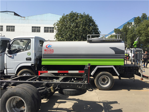 東風(fēng)5噸灑水車底盤配置:采用福田單排不帶翻轉(zhuǎn)駕駛室,全柴480發(fā)動機,軸距3300mm,600尼龍?zhí)?,油剎,不帶方向助力,帶暖風(fēng)不帶制冷。