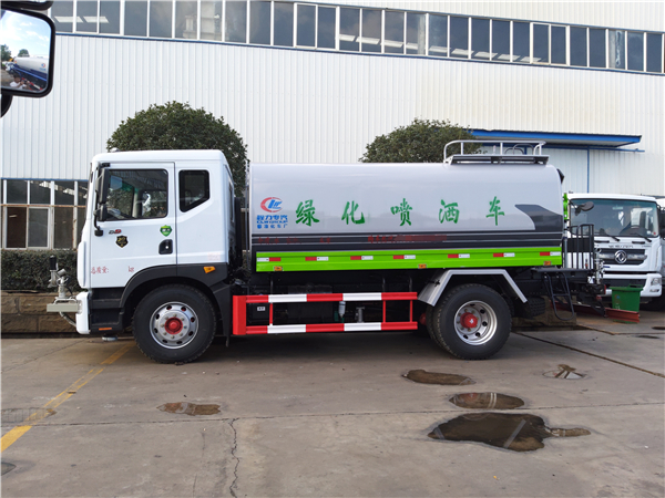 環(huán)衛(wèi)灑水車的前端裝有鴨形噴嘴或圓頭沖嘴,后面裝有圓柱開灑水噴嘴或蓮蓬頭噴嘴,后部有一工作平臺(tái),裝配有水炮,后部還可裝8個(gè)噴嘴(選裝)。噴水器一般用于沖洗街道,起除塵和降溫作用,其噴水器可以用調(diào)節(jié)噴嘴螺紋的方法改變噴水器的噴灑方向和角度,高射水炮可以用于城鄉(xiāng)園林綠化及應(yīng)急消防。蓮蓬嘴可以澆落路中間噴水器沖起的灰塵,起到清潔空氣的作用。