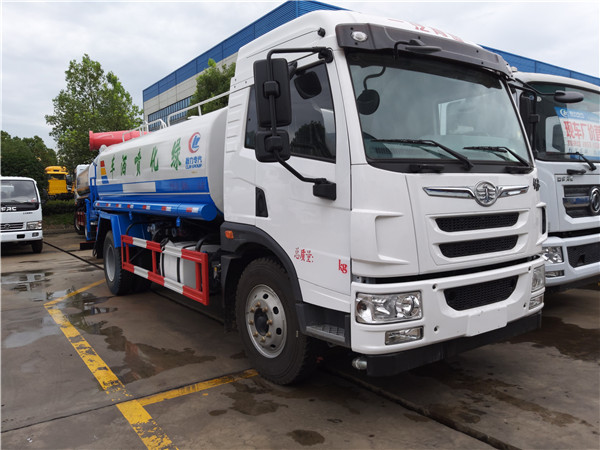 12)將解放灑水車四通閥門后柄拉至與地面平行,打開想要噴灑的球閥(前沖、后灑、側(cè)噴、花灑),然后起動(dòng)發(fā)動(dòng)機(jī),將變速器掛入擋位,將取力器開關(guān)向后拉即掛檔取力,然后分離離合器,泵開始運(yùn)轉(zhuǎn),開始灑水