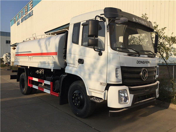 15方東風D913灑水車整車型號:CLW5182GPSL5型綠化噴灑車,底盤型號EQ1180GSZ5DJ,東風D913駕駛室,4500MM軸距,國六,康機190馬力,陜齒小八檔變速箱,10鋼絲胎,帶原裝ABS。前沖后灑,后工作平臺帶高炮,右位花灑,側(cè)噴。前橋5噸,后橋10噸,10.00尼龍?zhí)?。罐體尺寸:5000*2300*1620.免征,環(huán)保齊全。