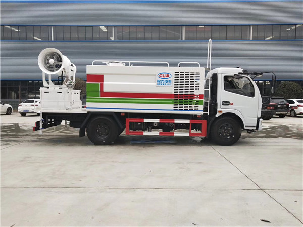 東風5噸抑塵車后灑:后部左右各安裝一個圓柱噴頭;各個進出水孔及操作部位要有指示說明,保證噴嘴噴出的水為均勻的扇面形。自動控制采用駕駛室內(nèi)撬板開關控制,并粘貼標識,操作按鈕固定牢固。