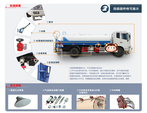 5.【東風(fēng)145灑水車東風(fēng)153灑水車】罐體容積:10-12方(噸),采用康明斯170/190馬力發(fā)動(dòng)機(jī),整車外形尺寸(長(zhǎng)×寬×高):8350×2470×3050(mm),總質(zhì)量:16000(kg)。配備:前沖、后灑、綠化高炮、大功率自吸自排灑水車!適合于:工地.綠化建設(shè)、城市綠化、物業(yè)管理用車、高速公路灑水車用車!