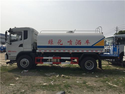 大運灑水車配置有大功率灑水泵,灑水泵帶自吸功能,能垂直吸6米,吸力非常大,還帶有消防接水口,能快速接水,灑水裝置有前沖,后灑,側(cè)噴,后工作平臺,平臺上安全綠化灑水水炮,其灑水車寬度14米,水炮射程可達30米,綠化灑水水炮可旋轉(zhuǎn)360°,還可調(diào)節(jié)成水柱裝,霧狀,大中小可任意調(diào)解,射程非常遠。