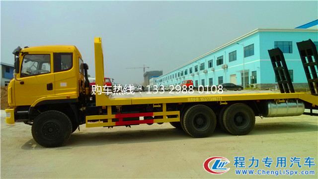 楚風(fēng)后雙橋平板運(yùn)輸車采用玉柴260馬力國四發(fā)動機(jī),法士特9檔變速箱,457后橋,10.00R20鋼絲胎,整車長10.45米,平板固定寬度2.5米,液壓伸縮到3米。該車有燃油,可輕松上戶辦理營運(yùn)證。