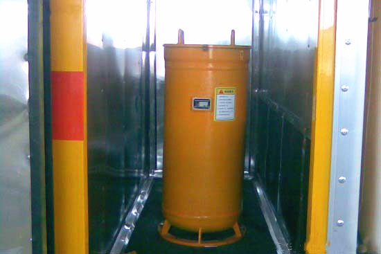 抗爆容器宜裝在后倉內(nèi)。隔離墻的厚度不應(yīng)小于80mm。墻的夾層內(nèi)應(yīng)裝入能吸收爆炸沖擊波能量且不燃(或阻燃)的材料;安裝抗爆容器時(shí),泄爆孔的位置應(yīng)避免與汽車底盤的重要零部件相對峙。