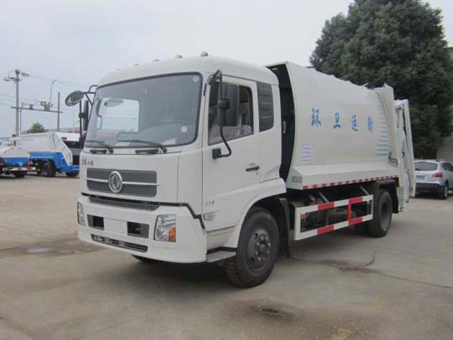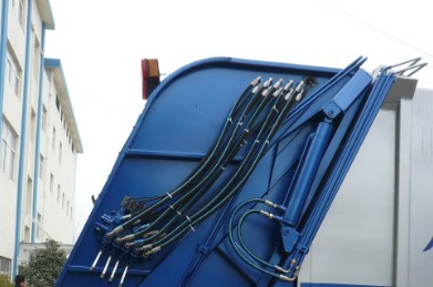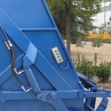 壓縮機(jī)構(gòu)(主壓板,副壓板,刮板,推板等),掛筒機(jī)構(gòu)等。主體結(jié)構(gòu)簡(jiǎn)圖如下: 其工作原理為:人工將垃圾裝入料槽中啟動(dòng)刮板機(jī)構(gòu)將垃圾從料槽中刮升至于箱體水平位置,再通過(guò)副推板將垃圾推向箱體車頭的位置。當(dāng)垃圾裝至3立方左右時(shí)啟動(dòng)副壓板機(jī)構(gòu)將箱體內(nèi)的壓力進(jìn)行壓實(shí)處理。同時(shí)主推板也相應(yīng)的配合使用在將垃圾壓實(shí)的過(guò)程中使得垃圾內(nèi)的廢液通過(guò)箱體內(nèi)的導(dǎo)流槽流入料槽中,再通過(guò)料槽左右兩端的出液口將廢液排除。在卸料過(guò)程中,首先將副推板整體整體提升至卸料狀態(tài),再啟動(dòng)主推板將壓縮后的垃圾從箱體內(nèi)推出,從而完成一整套裝卸過(guò)程。湖北程力專用汽車有限公司所生產(chǎn)的掛架式垃圾車,其中的掛架機(jī)構(gòu)主要是為了節(jié)省人工成本降低生活垃圾隊(duì)環(huán)衛(wèi)工人的身體危害。該掛架機(jī)構(gòu)可懸掛220升及600升兩種城市通用移動(dòng)式塑料垃圾收集筒。整體效果圖如下: