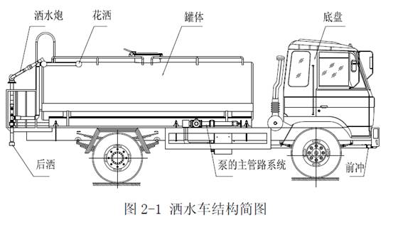 2、汽車底盤 此灑水車采用東風公司及一汽汽車集團定型二類底盤改裝而成。每個產品所采用的二類底盤,其結構詳見所附《汽車底盤使用說明書》。