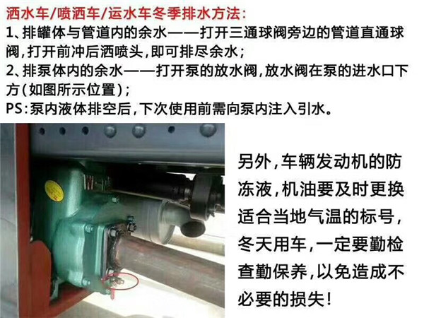 灑水車寒季第一注意工作:機油,液壓油品的更換,除了發(fā)動機,變速箱的機油更換,還要注意水泵的軸承單元里面的N32號柴油機油,冬夏季的油品潤滑要求不同,油品也有不同。