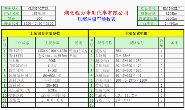 以下為東風(fēng)153壓縮式垃圾車上裝部分主要技術(shù)參數(shù):