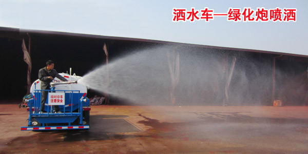 ◆ 灑水車(chē)綠化高炮功能:綠化高炮位于灑水車(chē)的后工作平臺(tái),可全方位旋轉(zhuǎn),并可調(diào)節(jié)多種噴灑、噴射方式(柱狀射程≥28m;霧狀射程≥15m)。綠化炮霧狀噴灑可用于園林綠化噴灑作業(yè);綠化高炮噴射一般用于沖洗澆灌樹(shù)木;綠化炮沖洗一般用于護(hù)欄沖洗、高空建筑物沖洗等。