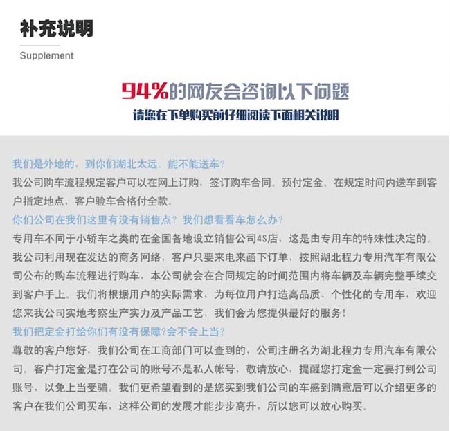 專用汽車行業(yè)資質最全、品類最多的企業(yè) 完善的質量管理體系 廠家直銷,沒有中間商 購車流程 國家標準售后服務五星級 廠家直銷服務熱線